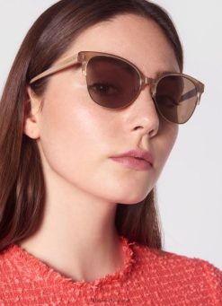 Accessories LK Bennett Women Honey and Sand Tortoise Frame Sunglasses Blue Turquoise LJ48X709