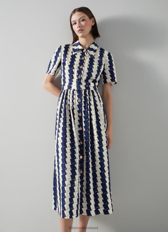 Clothing LK Bennett Women Daniela Blue Tile Print Organic Cotton-Blend Dress Navy Multi LJ48X253