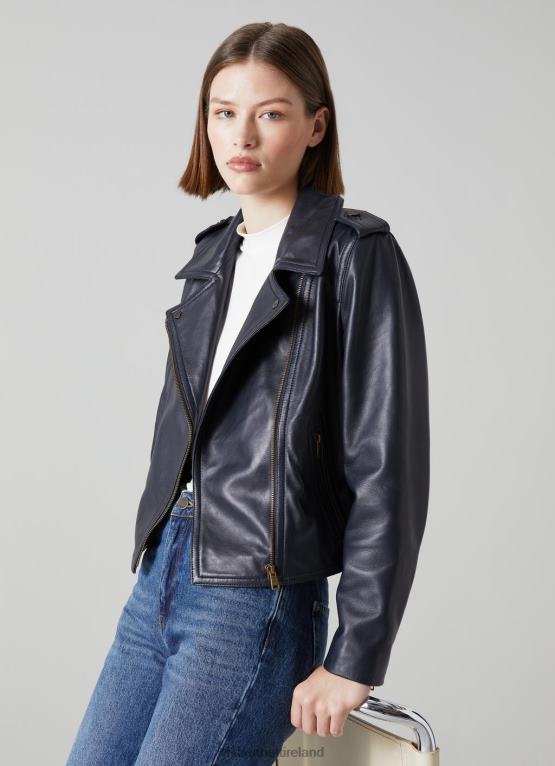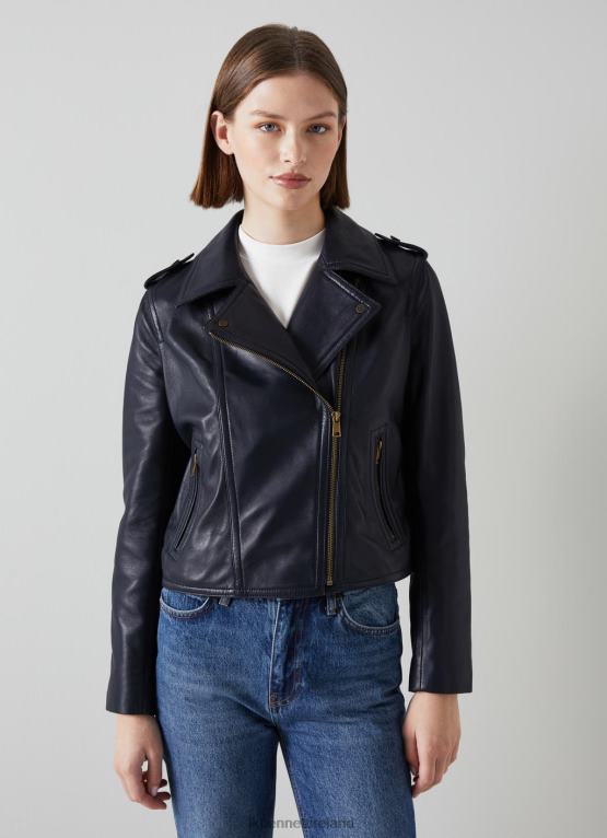 Clothing LK Bennett Women Ernst Leather Biker Jacket Spring Navy LJ48X91