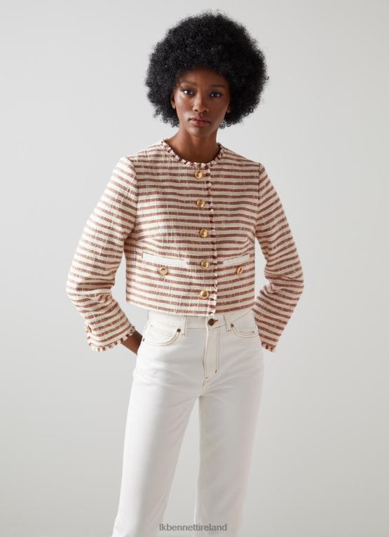 Clothing LK Bennett Women Oxlade and Stripe Italian Tweed Jacket Brown Cream LJ48X64