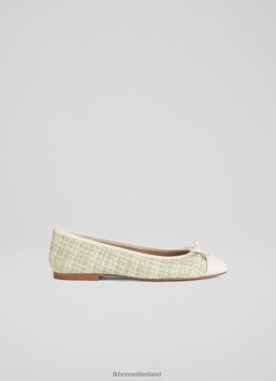 Shoes LK Bennett Women Kara Green and Cream Tweed and Leather Toe Cap Ballerina Pumps Pistachio LJ48X416
