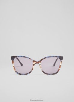 Accessories LK Bennett Women Honey and Sand Tortoise Frame Sunglasses Blue Turquoise LJ48X709