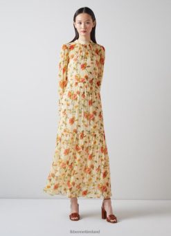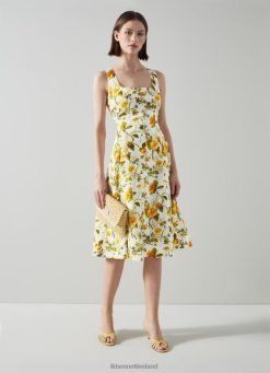 Clothing LK Bennett Women Ursula Yellow and White Chine Floral Print Cotton Dress Cream LJ48X205