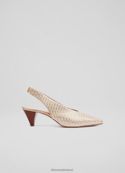 Shoes LK Bennett Women Paisley Platinum Woven Leather Cone Heel Slingbacks Silver LJ48X300