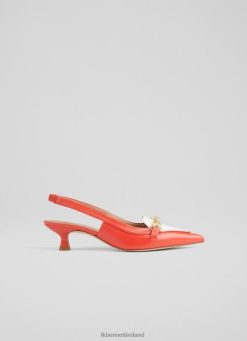 Shoes LK Bennett Women Reagan and Ivory Lizard-Effect Leather Kitten Heel Slingbacks Red LJ48X323