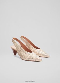 Shoes LK Bennett Women Paisley Platinum Woven Leather Cone Heel Slingbacks Silver LJ48X300