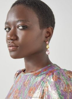 Accessories LK Bennett Women Celine Gold-Plated Crystal Drop Earrings Antique Pink LJ48X690
