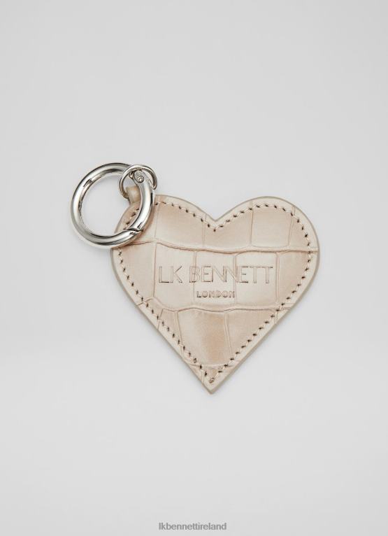 Accessories LK Bennett Women Remi Croc-Effect Recycled Leather Heart Charm Key Ring Taupe LJ48X647