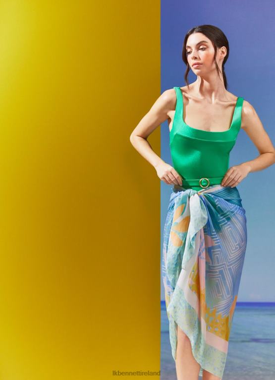Accessories LK Bennett Women Stella Geometric Print Silk Chiffon Sarong Turquoise Multi LJ48X635