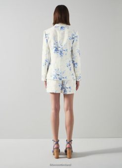 Clothing LK Bennett Women Fleur and White Linen-Cotton Meadow Scene Blazer Egret Blue LJ48X84