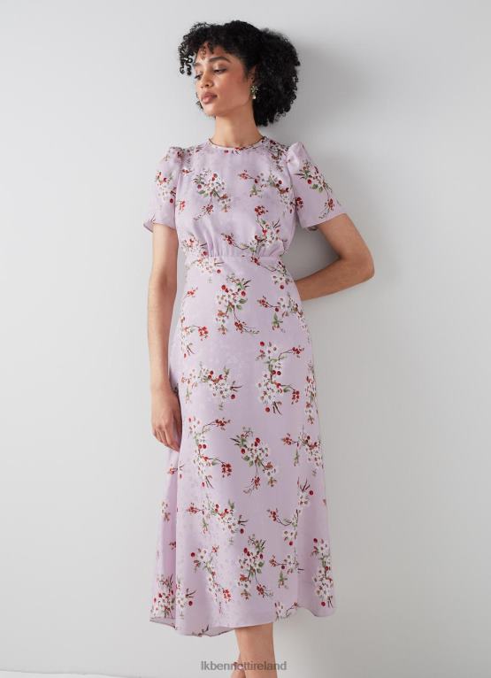 Clothing LK Bennett Women Boyd Lilac and Red Cherry Blossom Print Silk Jacquard Dress Purple LJ48X236