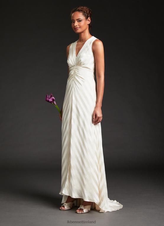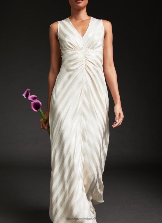 Clothing LK Bennett Women Colette Silk Chevron Stripe Long Wedding Dress Cream LJ48X272