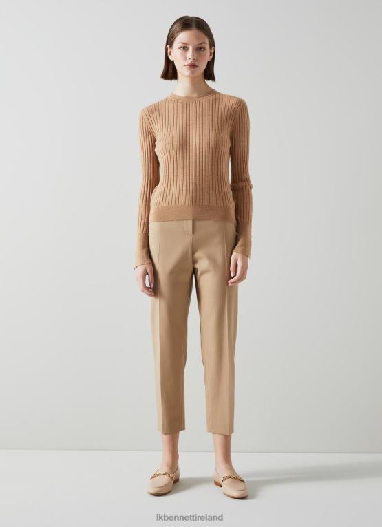 Clothing LK Bennett Women Daisy Merino-Cotton Blend Ribbed Jumper Camel Melange LJ48X118