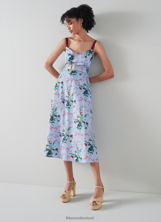 Clothing LK Bennett Women Eleni Cotton Meadow Scene Sun Dress Blue LJ48X213