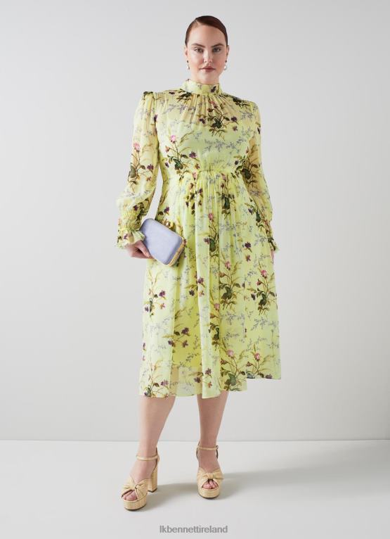 Clothing LK Bennett Women Eloise Meadow Scene Silk Dress Yellow LJ48X267
