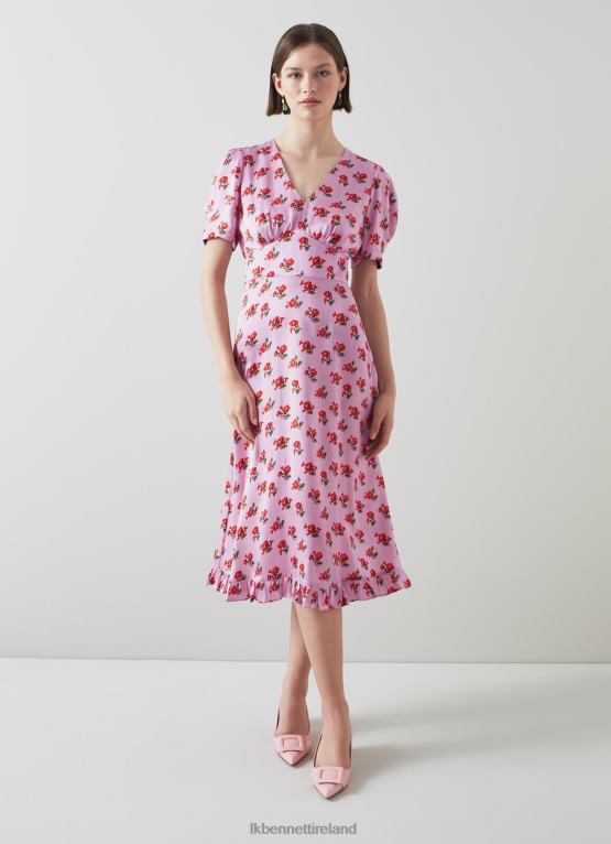 Clothing LK Bennett Women Elson Lilac Silk Primula Print Dress Purple LJ48X269