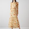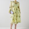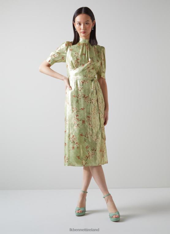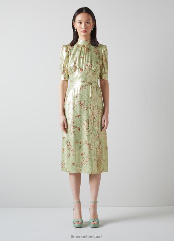 Clothing LK Bennett Women Finch Metallic Cherry Blossom Print Silk Dress Green LJ48X266