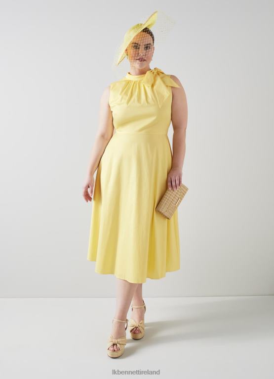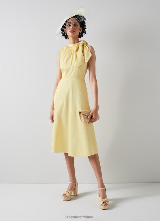 Clothing LK Bennett Women Freud Cotton Tie Neck Dress Yellow LJ48X250