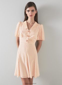 Clothing LK Bennett Women Mathilde and Cream Polka Dot Silk Tea Dress Navy Blue LJ48X194