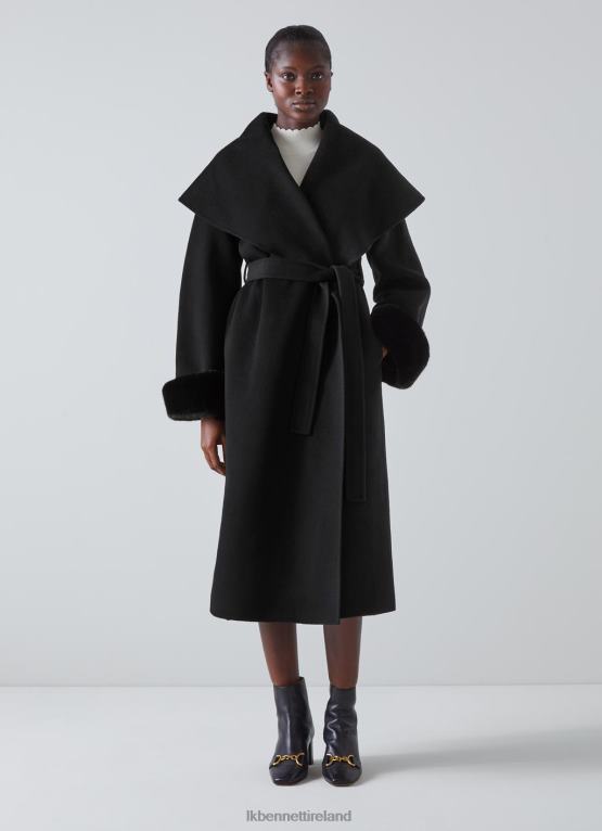 Clothing LK Bennett Women Jodie Wool-Blend Faux Fur Cuff Coat Black LJ48X83