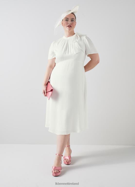 Clothing LK Bennett Women Kline Jade Crepe Tie-Neck Midi Dress Cream LJ48X190