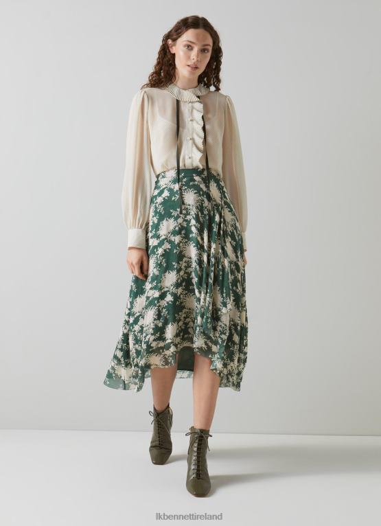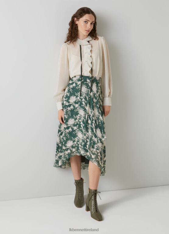 Clothing LK Bennett Women Krasner Green Chrysanthemum Print Georgette Skirt Black Forest Turtledove LJ48X185