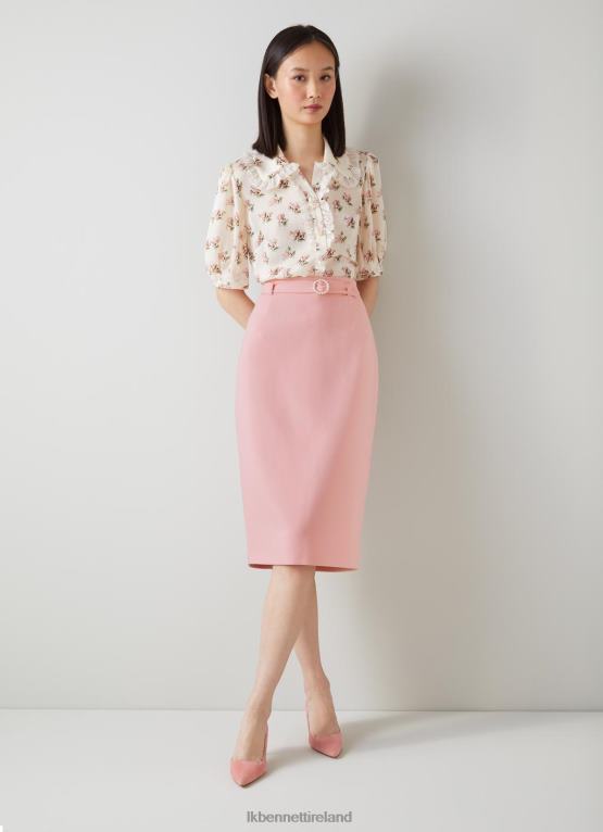 Clothing LK Bennett Women Perdy Pale Pink Recycled Crepe Pearl Button Pencil Skirt Potpourri LJ48X173