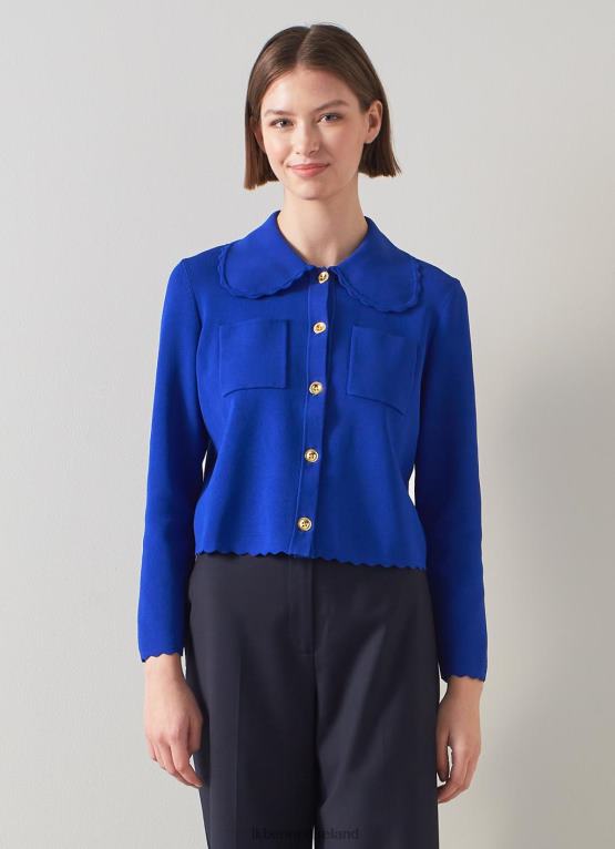 Clothing LK Bennett Women Rosa Knit Scallop Trim Cardigan Amparo Blue LJ48X121