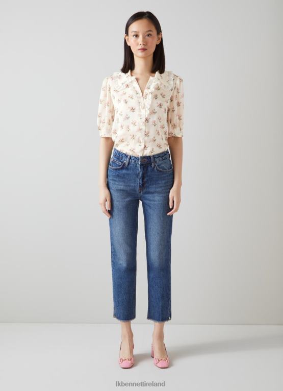 Clothing LK Bennett Women Rosie Cream and Pink Primula Print Silk Blouse Birch LJ48X1