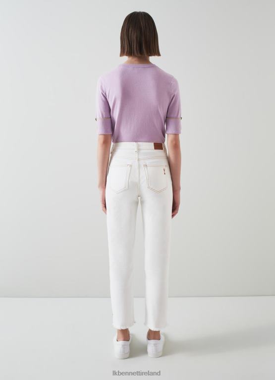 A wardrobe classic, our new Verity cropped jeans are perfect for the spring/summer season. Crafted from a super-soft cotton-blend denim in ecru, they sit on the waist, have a slim fit, a button and zip fly, side pockets, back pockets with LKB key motif embroidery, a vegan faux leather patch, and a cropped length finished with a raw hem. Wear them with a lightweight knit and a pair of sneakers.