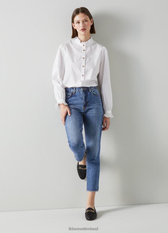 A wardrobe classic, our new Verity cropped jeans sit in our LKB Conscious collection. Crafted from a super-soft organic cotton-blend denim in mid-indigo, they sit on the waist, have a zip fly, a button with LKB logo detail, side pockets, back pockets, LKB key motif embroidery, vegan faux leather patch and a slim fit with a cropped length. Wear them with a pretty blouse or a chic knit.