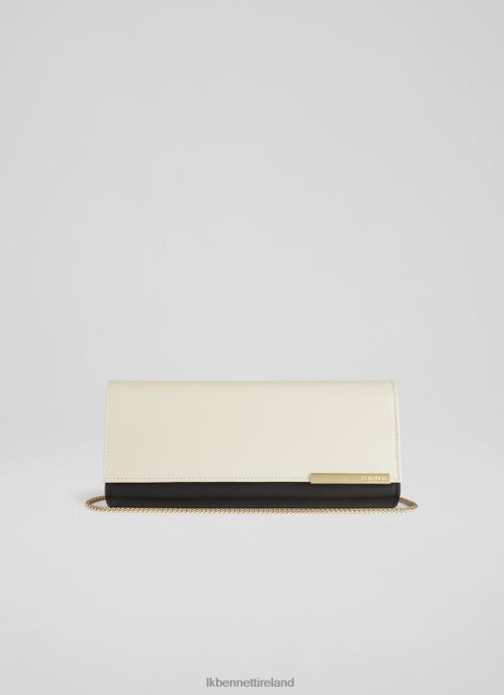 Handbags LK Bennett Women Inga and Leather Clutch Bag Black Ecru LJ48X563