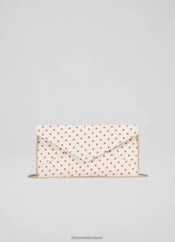 Handbags LK Bennett Women Kendall Cream and Spot Print Silk Clutch Bag Ivory Red LJ48X568