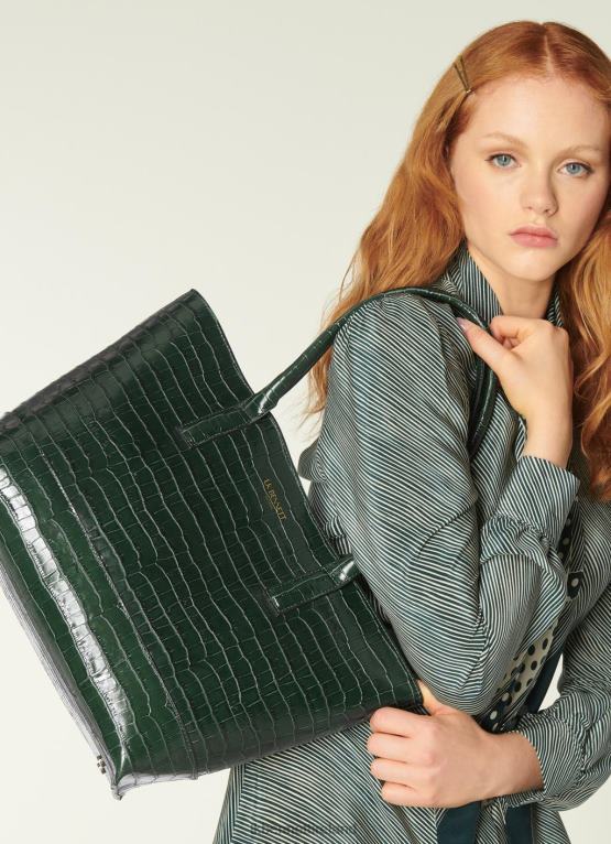 Handbags LK Bennett Women Lacey Green Croc-Effect Leather Tote Bag Forest LJ48X619