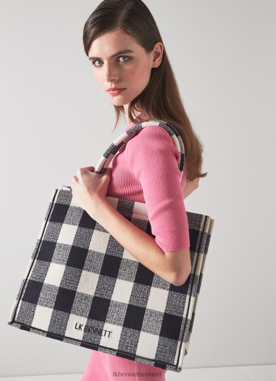 Big and bold, our new Wendy tote is designed for summer days at the beach, picnics in the park or just running around town. Crafted from a navy blue and cream oversized check fabric, it’s an open style with double shoulder straps, a cream canvas lining with a slip pocket and it’s finished with the LKB logo. Simply grab it and go.