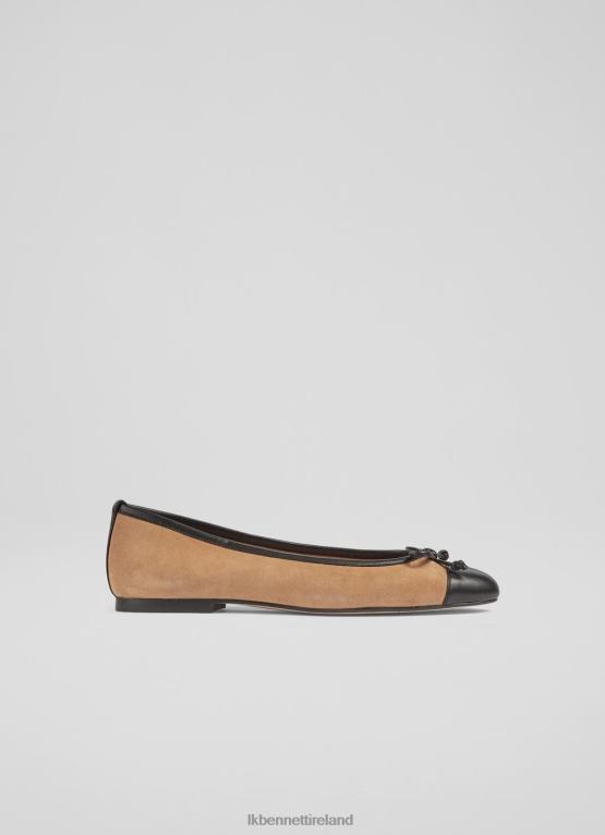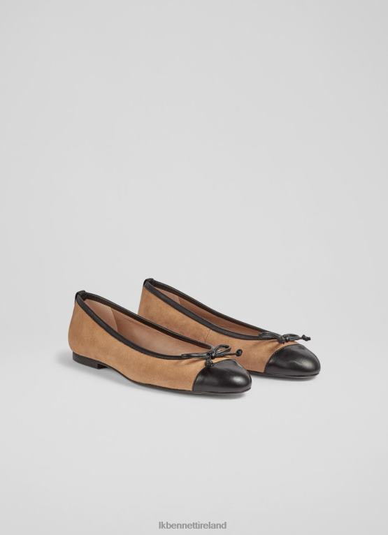 Shoes LK Bennett Women Kara Sand Suede And Black Leather Toe Cap Ballerina Pumps Neutral LJ48X451