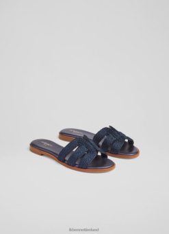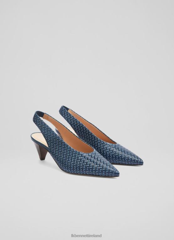 Shoes LK Bennett Women Paisley Woven Leather Cone Heel Slingbacks Navy Blue LJ48X336