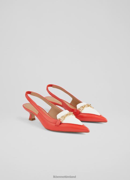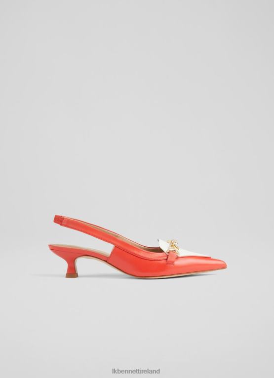 Shoes LK Bennett Women Reagan and Ivory Lizard-Effect Leather Kitten Heel Slingbacks Red LJ48X323