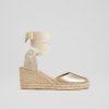 A new addition to our espadrille collection, the Zora espadrilles offer added texture and luxury to a classic summer shoe. Crafted in Spain from beige jute, they have an almond-shaped toe with a white leather toe cap, cream ribbon tie-up ankle straps, gold rivet detail to the back strap and an espadrille 80mm wedge heel. A stylish upgrade to your everyday espadrilles, wear them on holidays and when the sun shines.